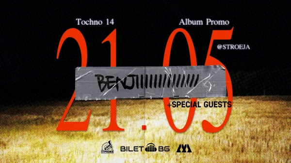Първи самостоятелен концерт на новоизгряващата звезда на българската сцена BENJIIIIIIIIIIIIII. Той ще представи на живо за първи път в цялост албума си "Tochno 14" придружен от едни от най-знаменитите имена в модерната българска музика. Концертът ще се състои в CLUB STROEJA на 21.05.